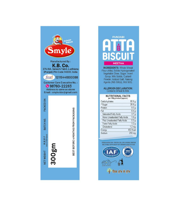 Smyle | Punjabi Atta Biscuits | 900GM Combo Offer (Meetha) | Whole Wheat Biscuits | Healthy Digestive Atta Cookies | Net Weight 300G Per Tray (Pack Of 3 Trays)